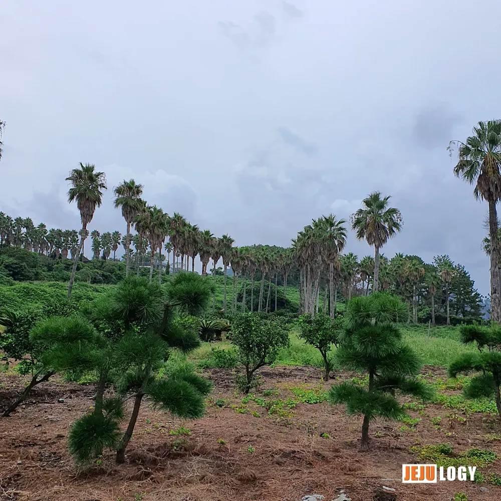 Still, for someone like me who is used to the monotonous street trees of the Seoul metropolitan area, Jeju's palms are special enough. The ones I saw here were planted rather densely — more like a plantation than landscaping. I think palm trees look better with some breathing room between them.