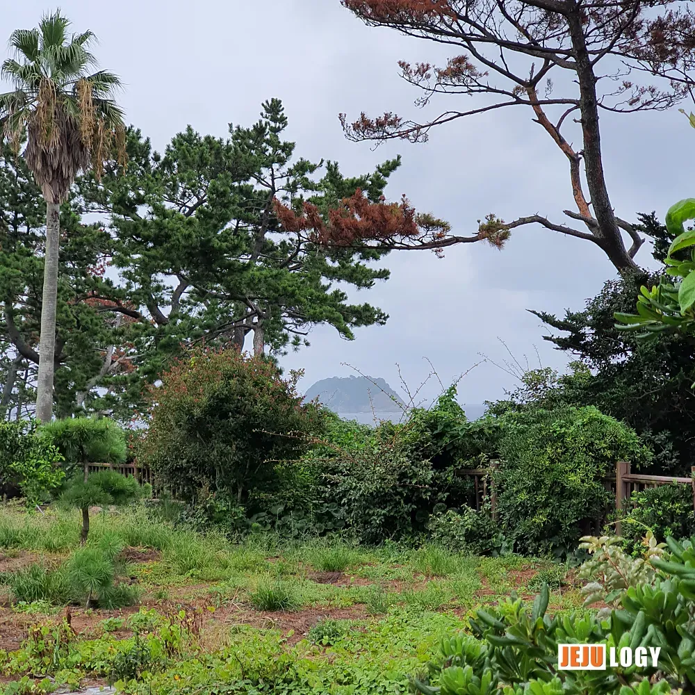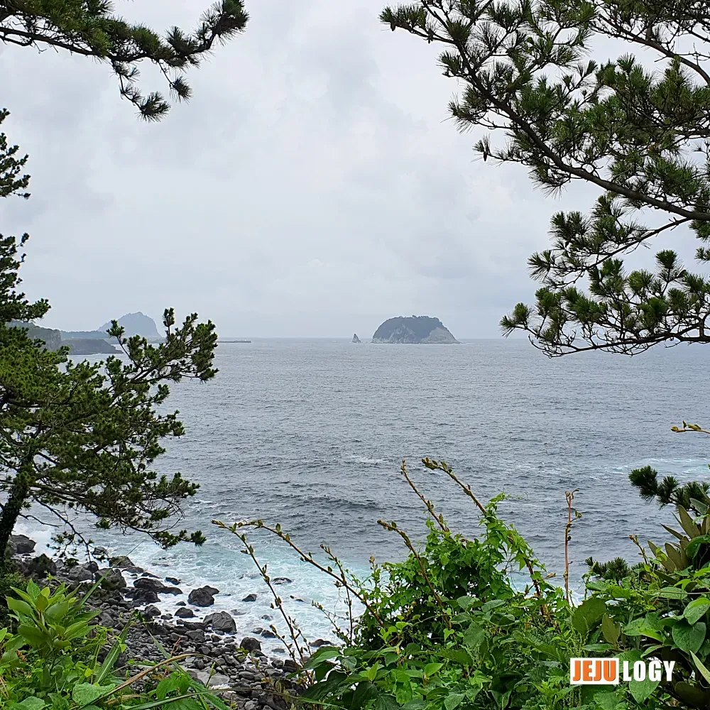 Munseom Island (문섬) came into view. Lean a little further past the trees, and Saepseom Island (섶섬) peeks out too.
