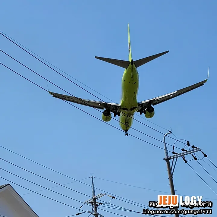Since Jeju isn't home to a huge variety of airlines, a couple of hours at this spot is usually enough to see most of the aircraft types that serve the island. Clean shots are fine. But the real draw here — the thing that makes this location different from the other spotting points around the airport — is the tangle of utility poles and power lines running across the frame. Planes threading between them, looking like they might clip a wire on the way down. That tension is the shot.