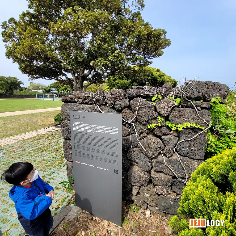 Susan Jinseong is located in Susan-ri, Seongsan-eup, in the eastern part of Jeju Island. It was built in 1439, the twenty-first year of King Sejong's reign, by Jeju Governor Han Seung-sun, and was one of nine garrison forts constructed across the island to defend against coastal raids.